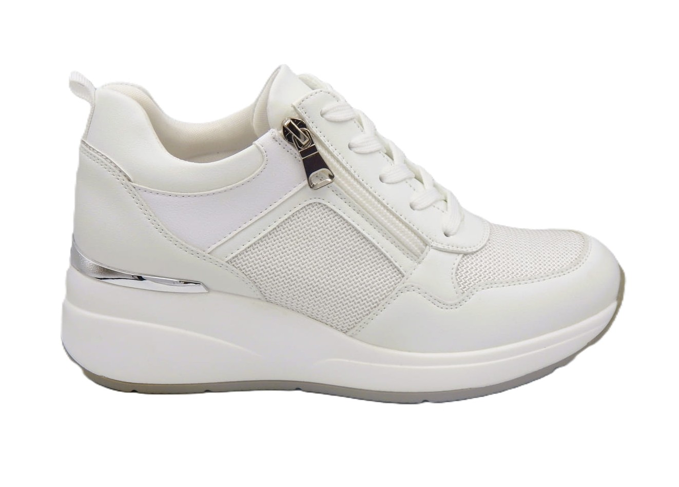 Μοντέρνα δετά λευκά γυναικεία sneakers Adam’s shoes. , για σπορ ή casual εμφανίσεις, με μοντέρνο σχεδιασμό που τραβάει τα βλέμματα. Διαθέτουν memory foam προσφέροντας την άνεση που χρειάζεστε για πολύωρη χρήση. Ύψος τακουνιού 4,5εκ. Διαθέτουν φερμουάρ για εύκολη χρήση.