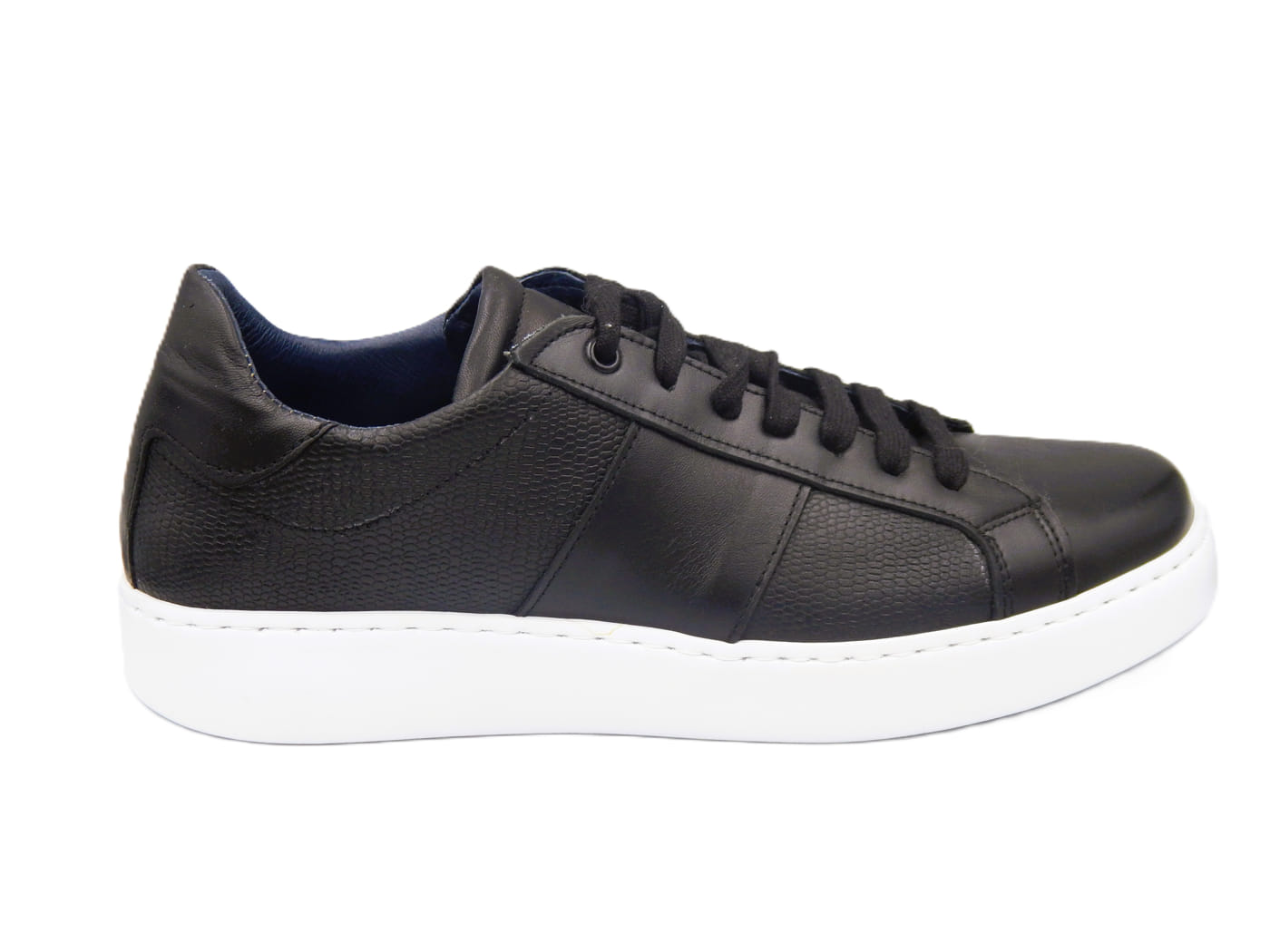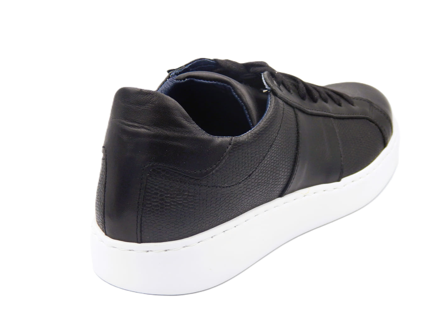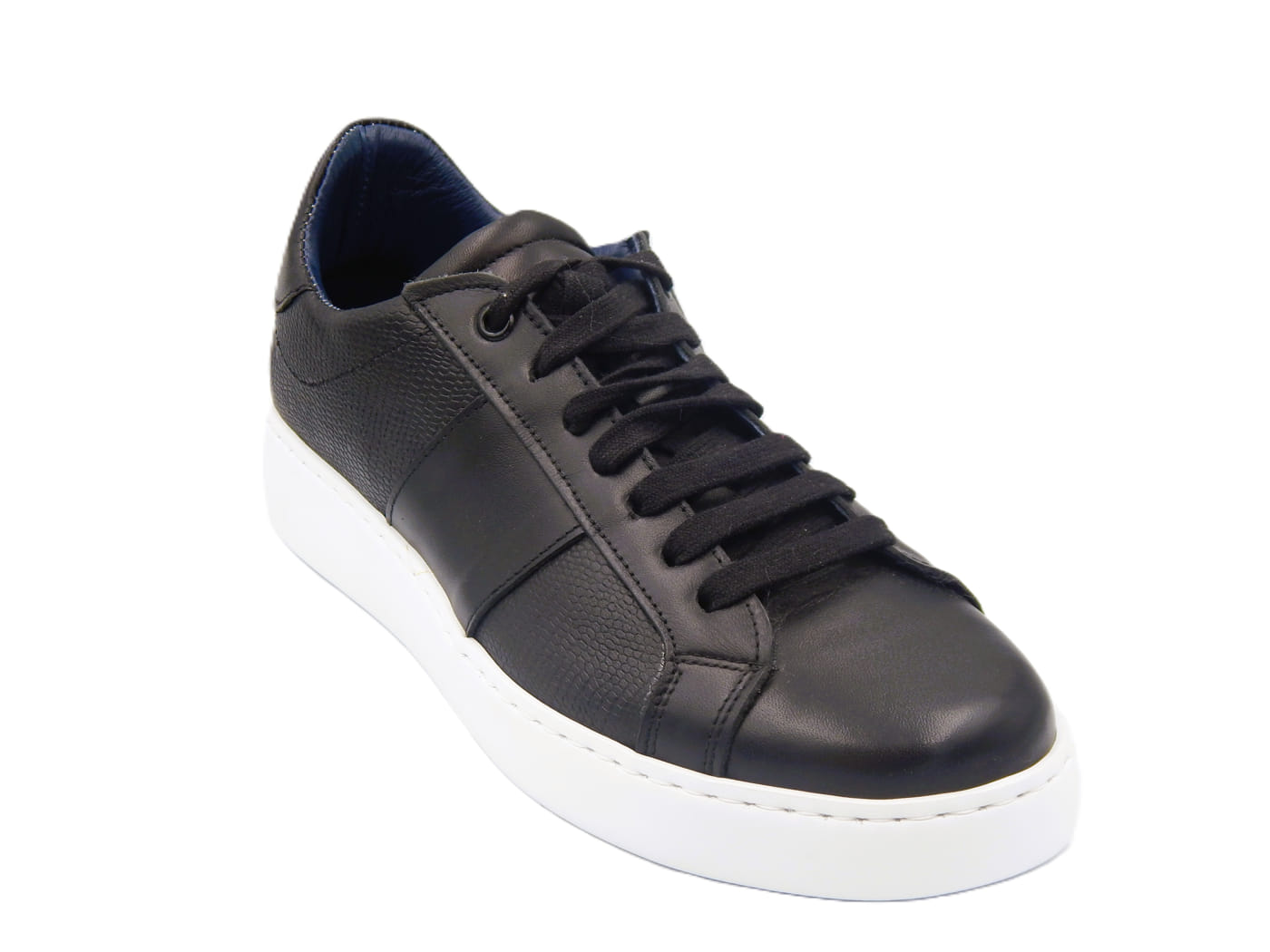 Αυτά τα ανδρικά δερμάτινα sneakers της Ελληνικής εταιρείας ANTONIO συνδυάζουν ανθεκτικά υλικά με άνεση κορυφαίου επιπέδου. Η ελαστική και αντικραδασμική σόλα εξασφαλίζει σταθερό βήμα και προστασία.Ιδανικά για casual εμφανίσεις στην πόλη. Χρώμα μαύρο με λευκή σόλα – Ύψος σόλας 2,5εκ