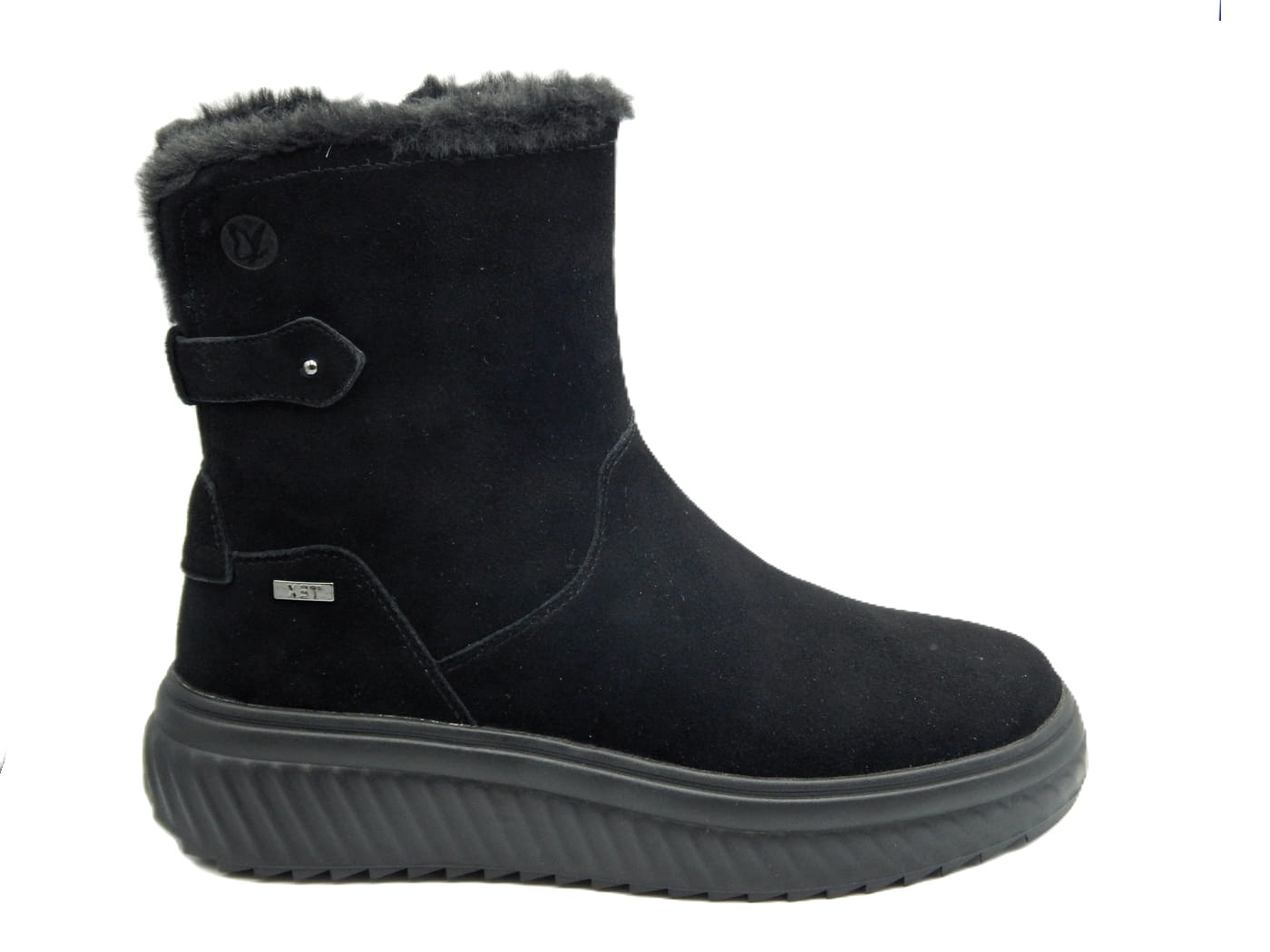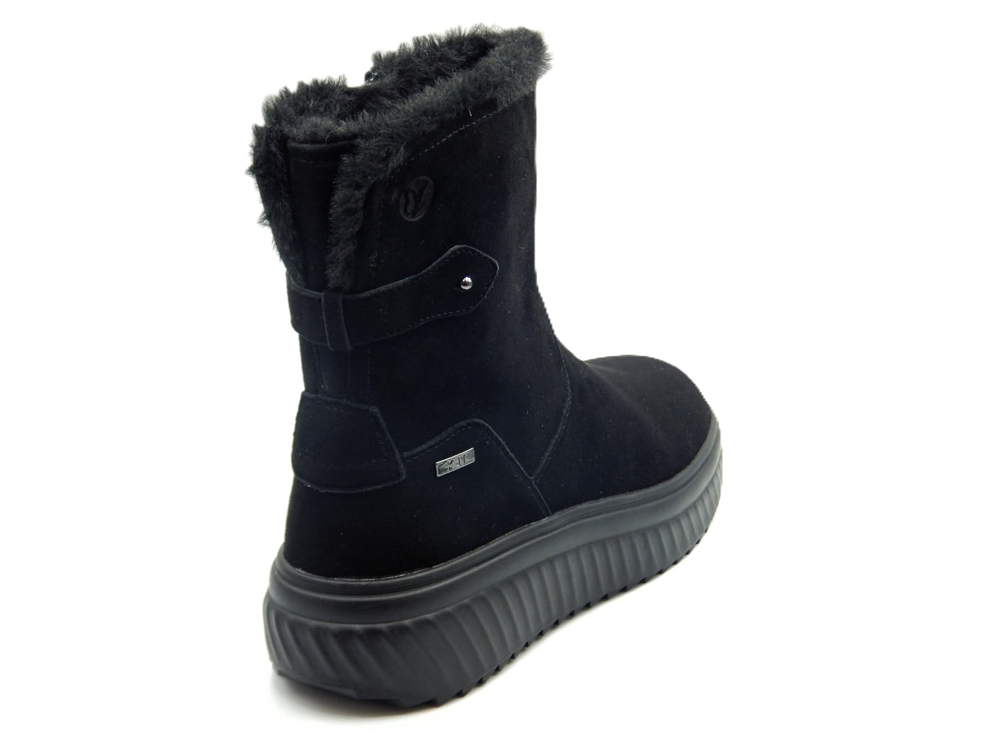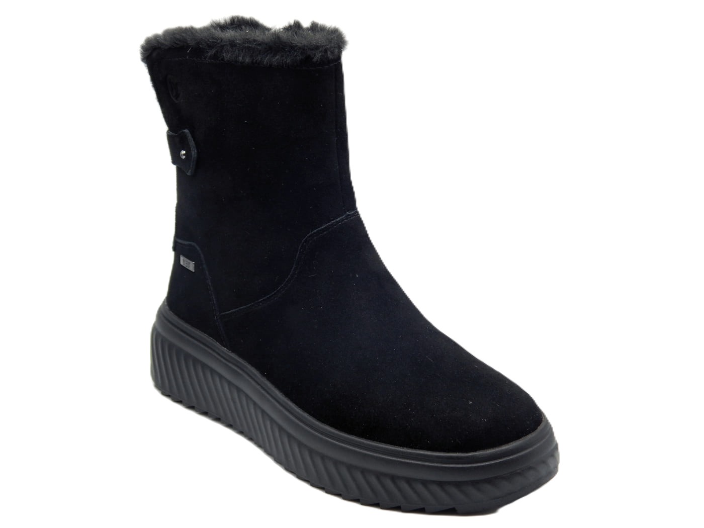 Γυναικεία Caprice  μποτάκια αδιάβροχα με γούνα σε μαύρο χρώμα κατασκευασμένα από δέρμα suede, με άνετο εσωτερικό, ανατομικό πέλμα και αντιολισθητική σόλα. Διαθέτουν κανονική φόρμα. Το ύψος του τακουνιού είναι 5 cm. Έχουν ζεστή γούνινη επένδυση στο εσωτερικό τους, εξασφαλίζοντας ότι θα κρατούν τα πόδια σας ζεστά και άνετα. Το αδιάβροχο υλικό κατασκευής τους προστατεύει από το νερό, κάνοντάς τα ιδανικά για βροχερές μέρες.