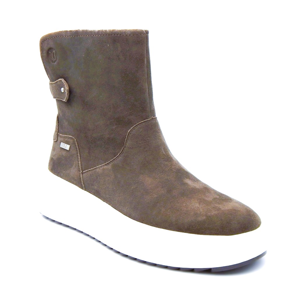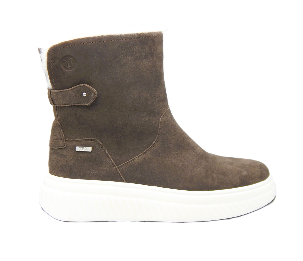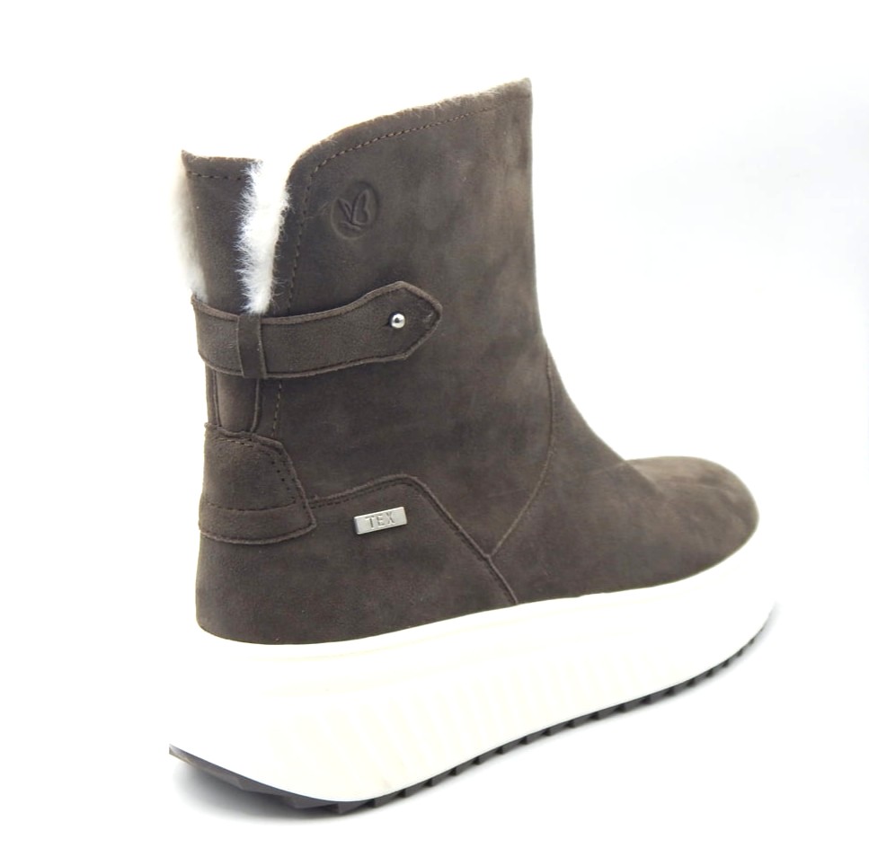 Γυναικεία μποτάκια Caprice αδιάβροχα με γούνα σε γκρί χρώμα κατασκευασμένα από δέρμα suede, με άνετο εσωτερικό, ανατομικό πέλμα και αντιολισθητική σόλα. Διαθέτουν κανονική φόρμα. Το ύψος του τακουνιού είναι 5 cm. Έχουν ζεστή γούνινη επένδυση στο εσωτερικό τους, εξασφαλίζοντας ότι θα κρατούν τα πόδια σας ζεστά και άνετα. Το αδιάβροχο υλικό κατασκευής τους προστατεύει από το νερό, κάνοντάς τα ιδανικά για βροχερές μέρες.