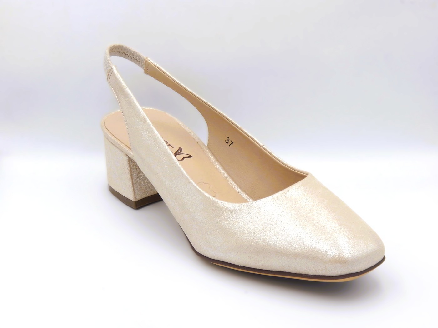 Caprice γυναικείες δερμάτινες slingback γόβες σε λευκό μεταλλικό πέρλα χρώμα της συλλογής Άνοιξη -Καλοκαίρι 2026. Είναι ανατομικές, κατασκευασμένες από γνήσιο δέρμα ένα υλικό που τις κάνει να προσαρμόζονται στη φόρμα του ποδιού παρέχοντας επιπλέον άνεση. Ύψος τακουνιού 4,5εκ