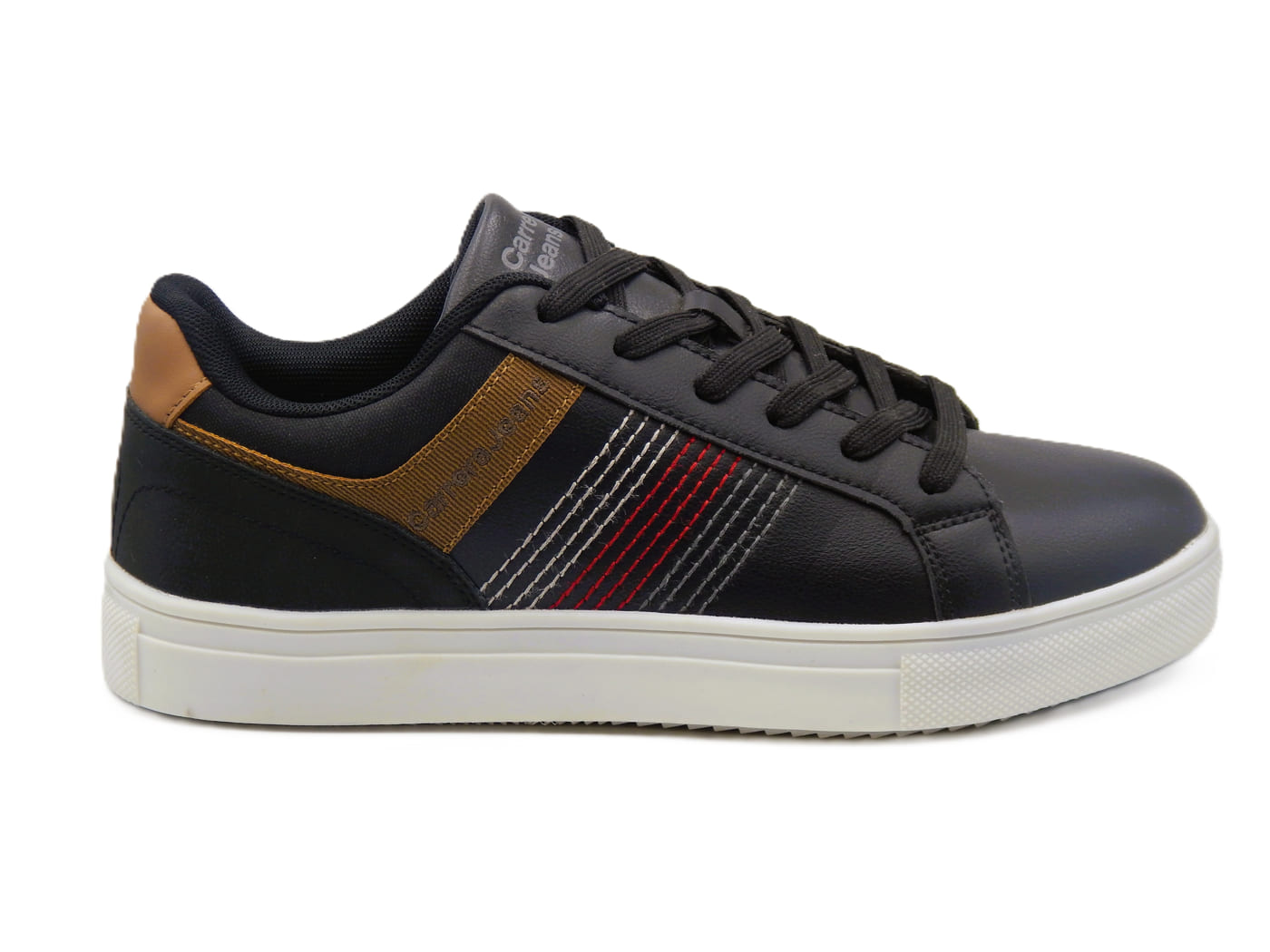 Αυτό το ανδρικό casual sneaker CARRERA σε μαύρο χρώμα είναι κατασκευασμένο από τεχνικό δέρμα, προσφέροντας μια μοντέρνα και ανθεκτική επιλογή για καθημερινές δραστηριότητες. Εσωτερικά διαθέτει ύφασμα και πάτο με τεχνολογία memory foam, ο οποίος προσαρμόζεται στο σχήμα του ποδιού σας, εξασφαλίζοντας άνεση σε κάθε βήμα. Η επίπεδη σόλα του προσφέρει σταθερότητα και ευκολία κατά τη διάρκεια της ημέρας.