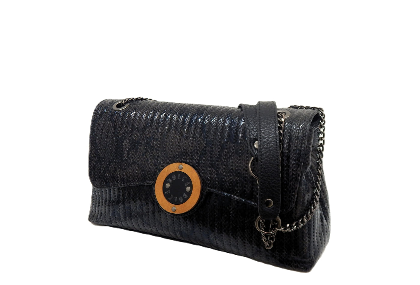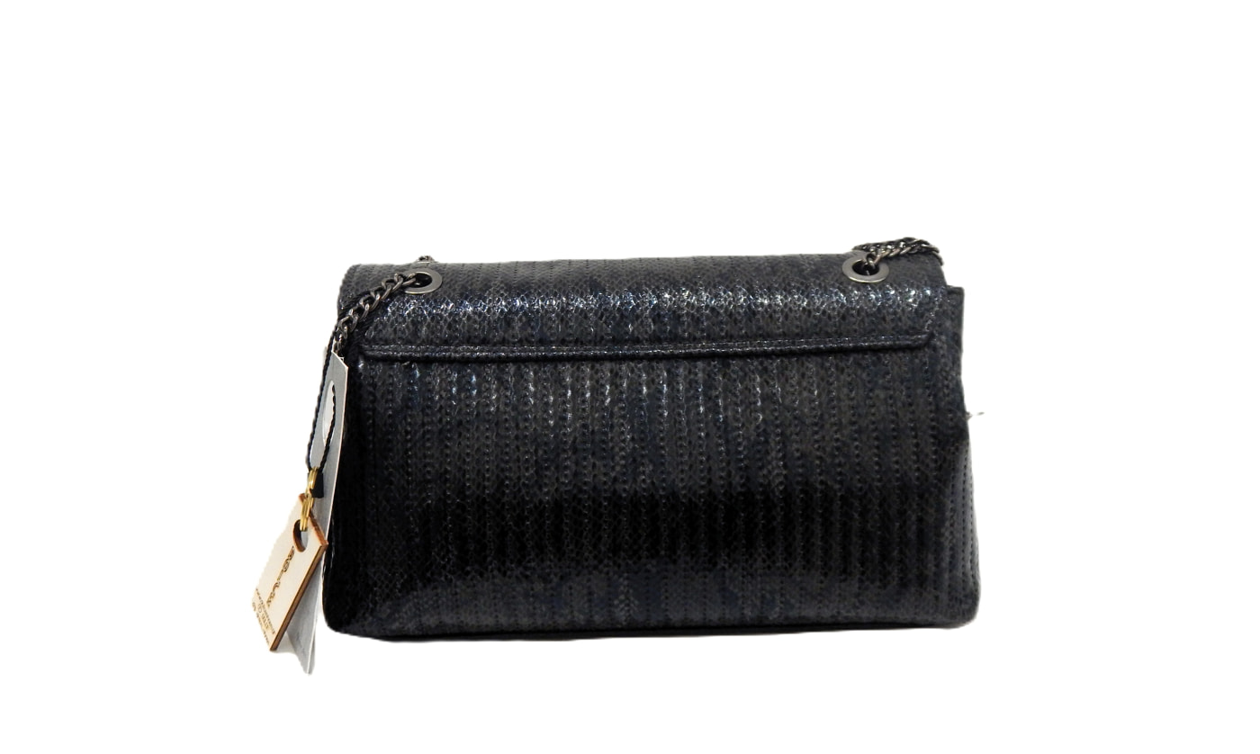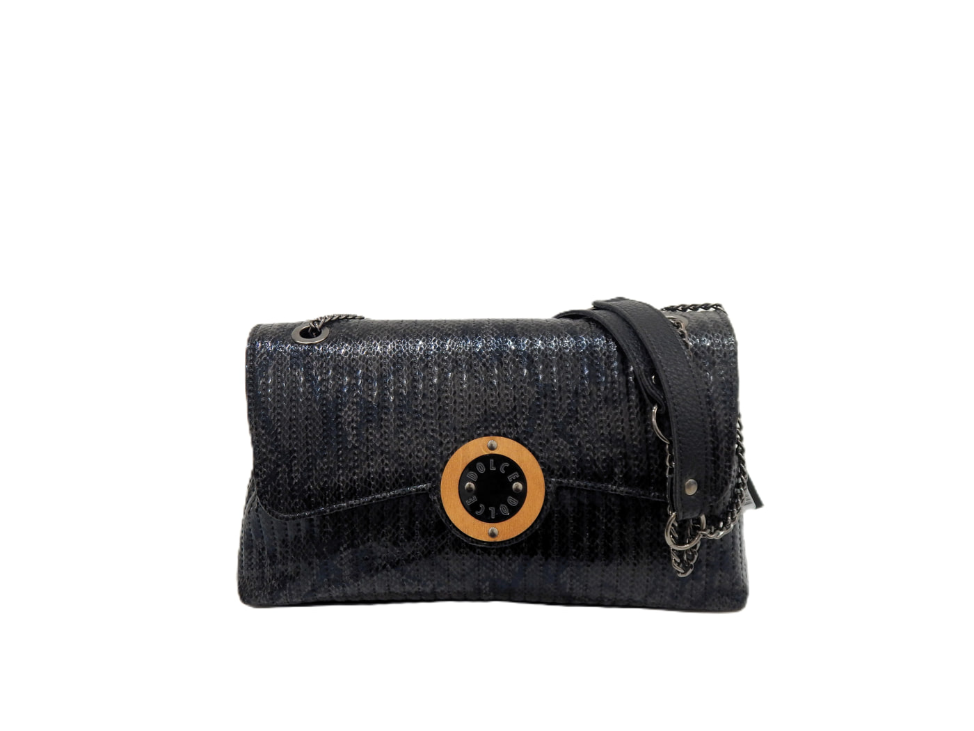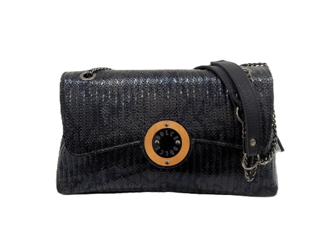 Tσάντα γυναικεία ώμου DOLCE σε μαύρο χρώμα με καπάκι που κλείνει με κουμπί μαγνήτη. Διαθέτει δύο λουριά με αλυσίδα για να κρατηθεί στον ώμο και χιαστί .Άνοιγμα από πάνω με καπάκι, διαθέτει τρείς κύριες θέσεις η μία από αυτές με φερμουάρ και μία επιπλέον θέση βοηθητική με φερμουάρ . Διαστάσεις : Ύψος 17εκ – Μήκος 30εκ – Πλάτος 9εκ