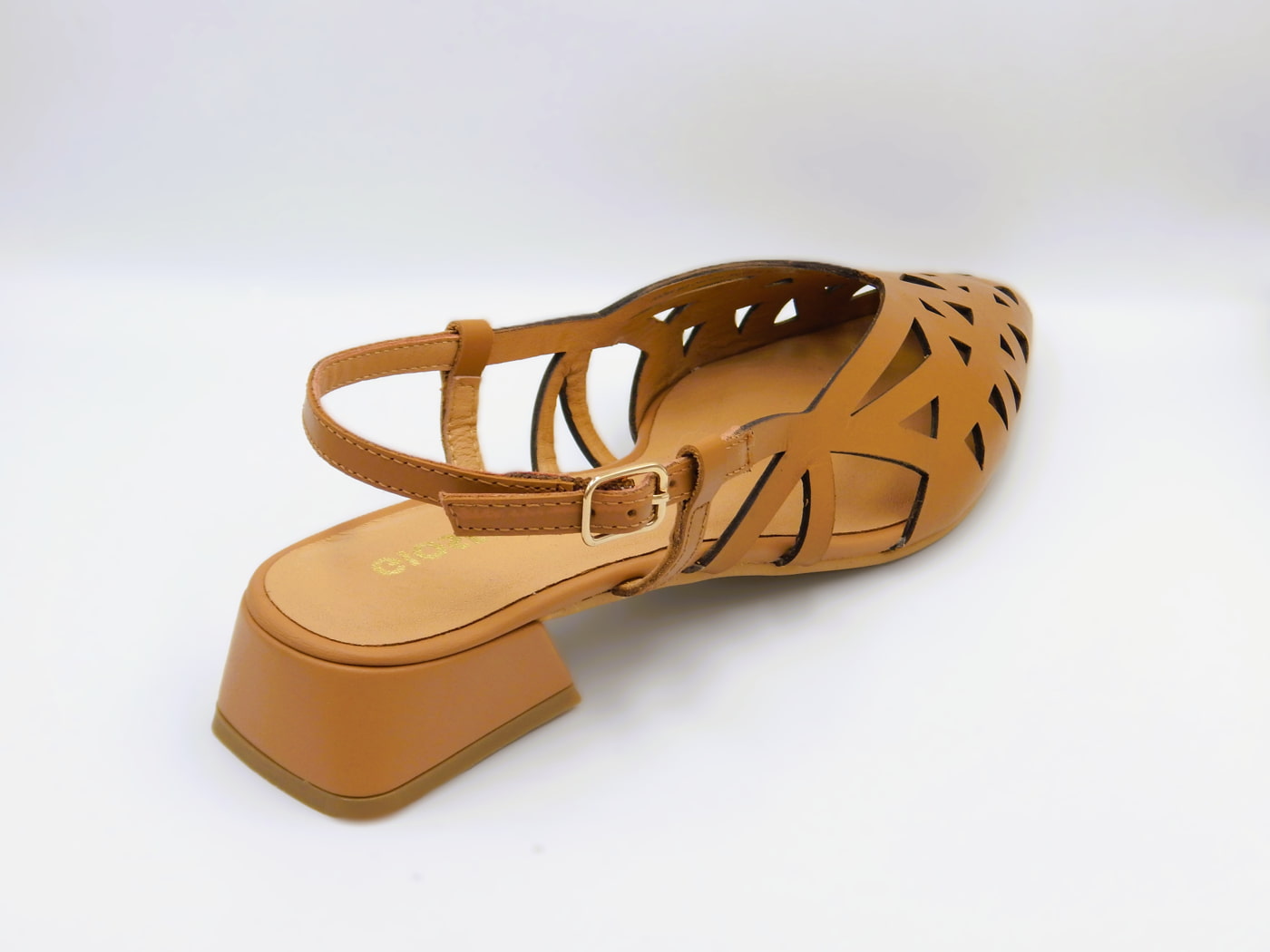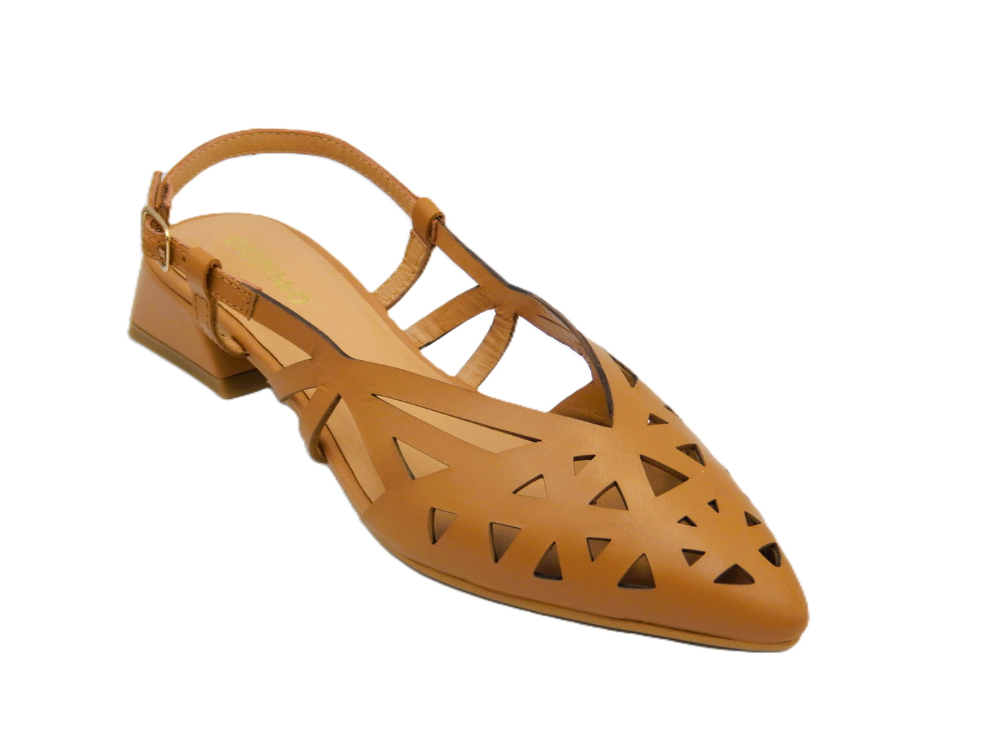 Gioseppo γυναικείες slingback μπαλαρίνες σε ταμπά χρώμα. Ένα chic και πολύ άνετο lasercut σχέδιο από εξαιρετικής ποιότητας δέρμα και τακούνι 2 εκατοστών ιδανικό για πολύωρη χρήση.