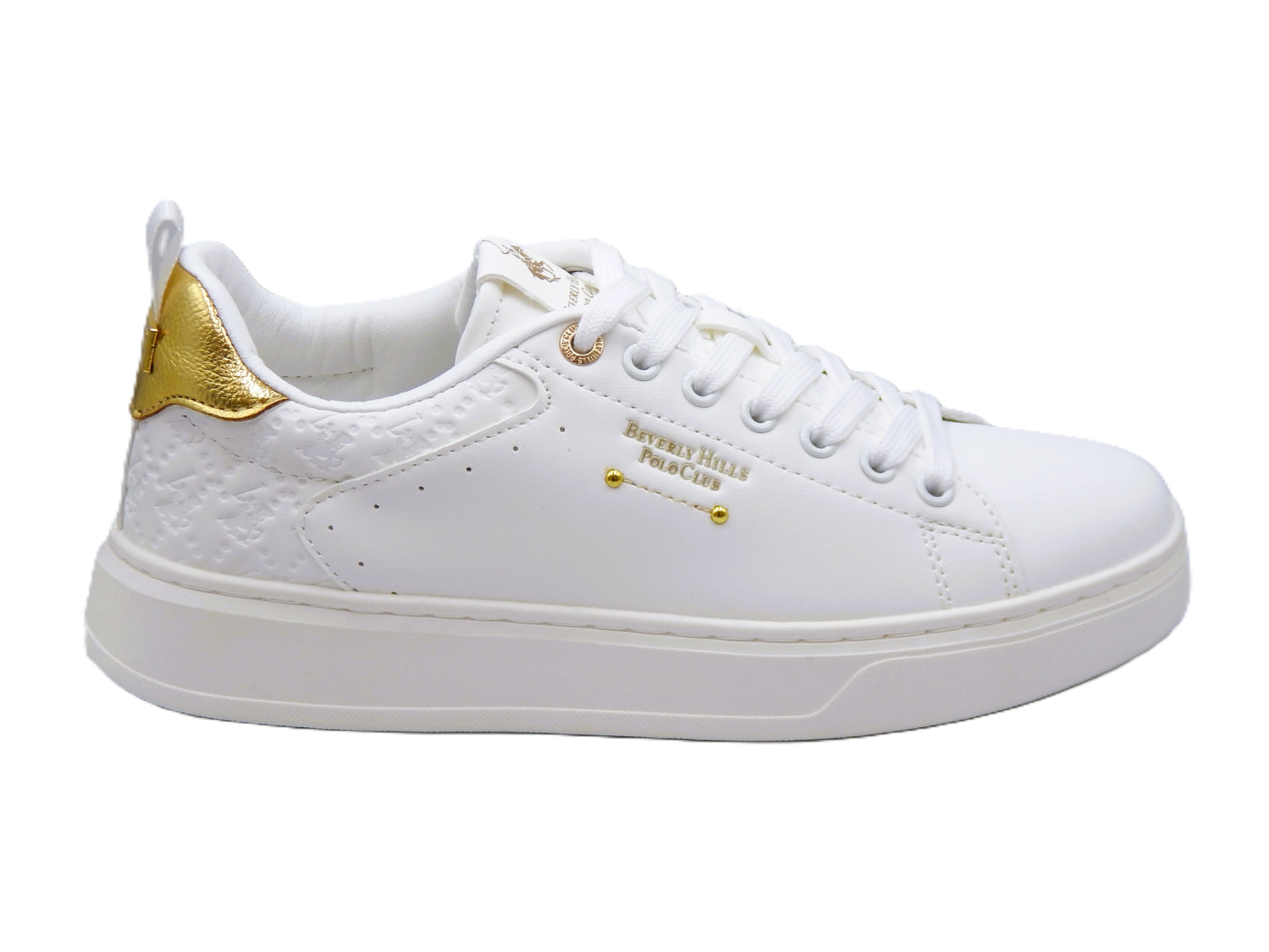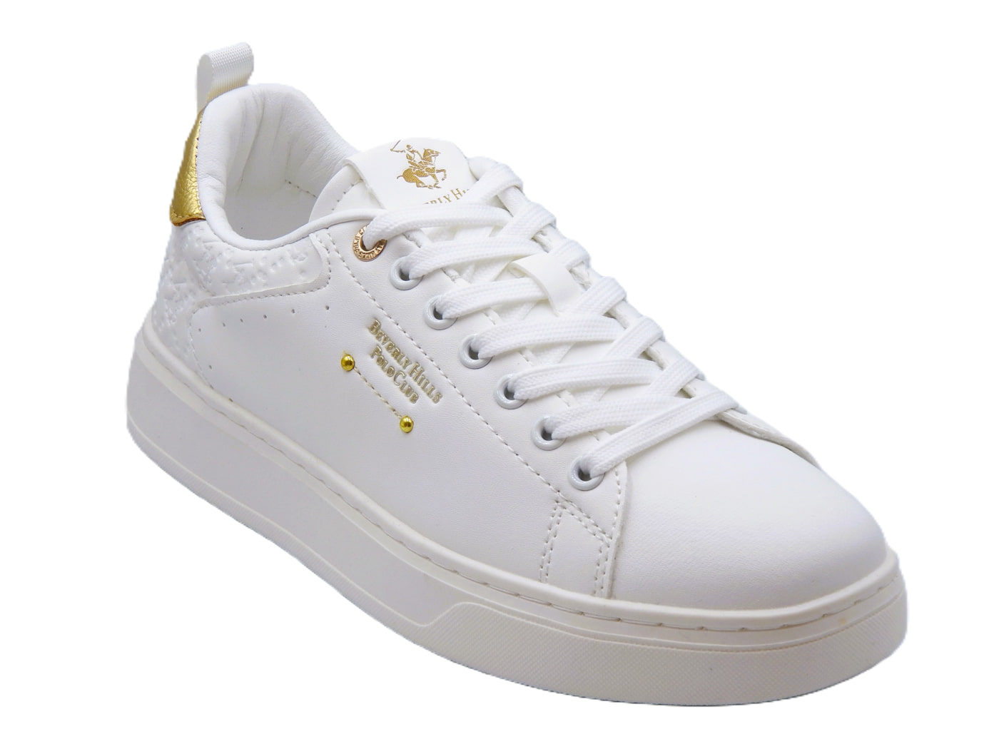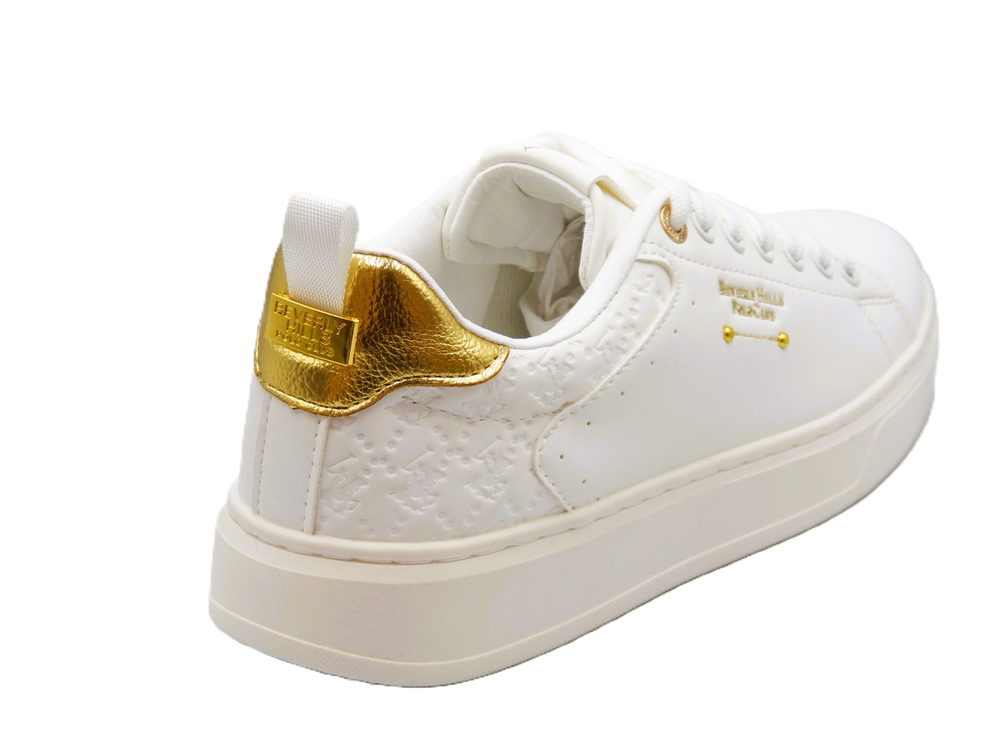 Polo Beverly Hills γυναικεία sneakers σε λευκό χρώμα. Κατασκευασμένα από εξαιρετικής ποιότητας συνθετικό δέρμα και υφασμάτινη επένδυση. Διαθέτουν αποσπώμενο πάτο με μαξιλάρι και αντιολησθητική σόλα. Ύψος σόλας 3εκ