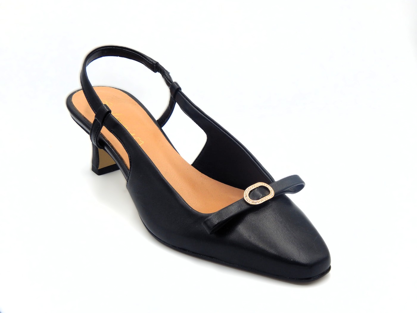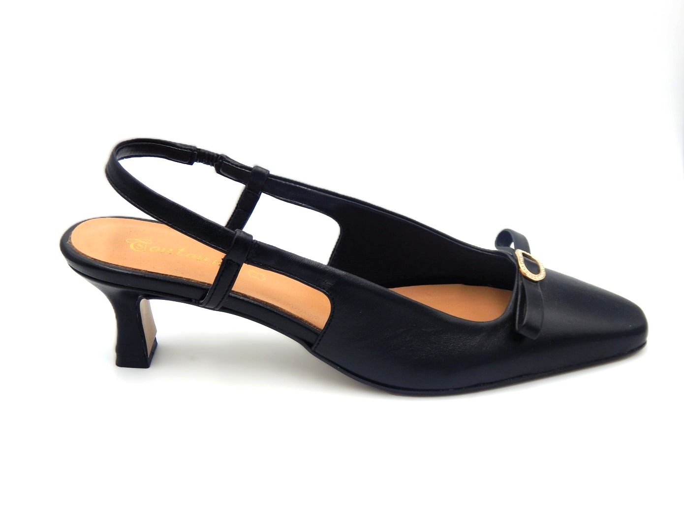 Απόλυτα θυληκές και κομψές γόβες slingback της Ελληνικής εταιρίας TOUTOUNIS σε μαύρο χρώμα. Κατασκευασμένες εσωτερικά και εξωτερικά από εξαιρετικής ποιότητας δέρμα .΄Υψος τακουνιού 5,5εκ