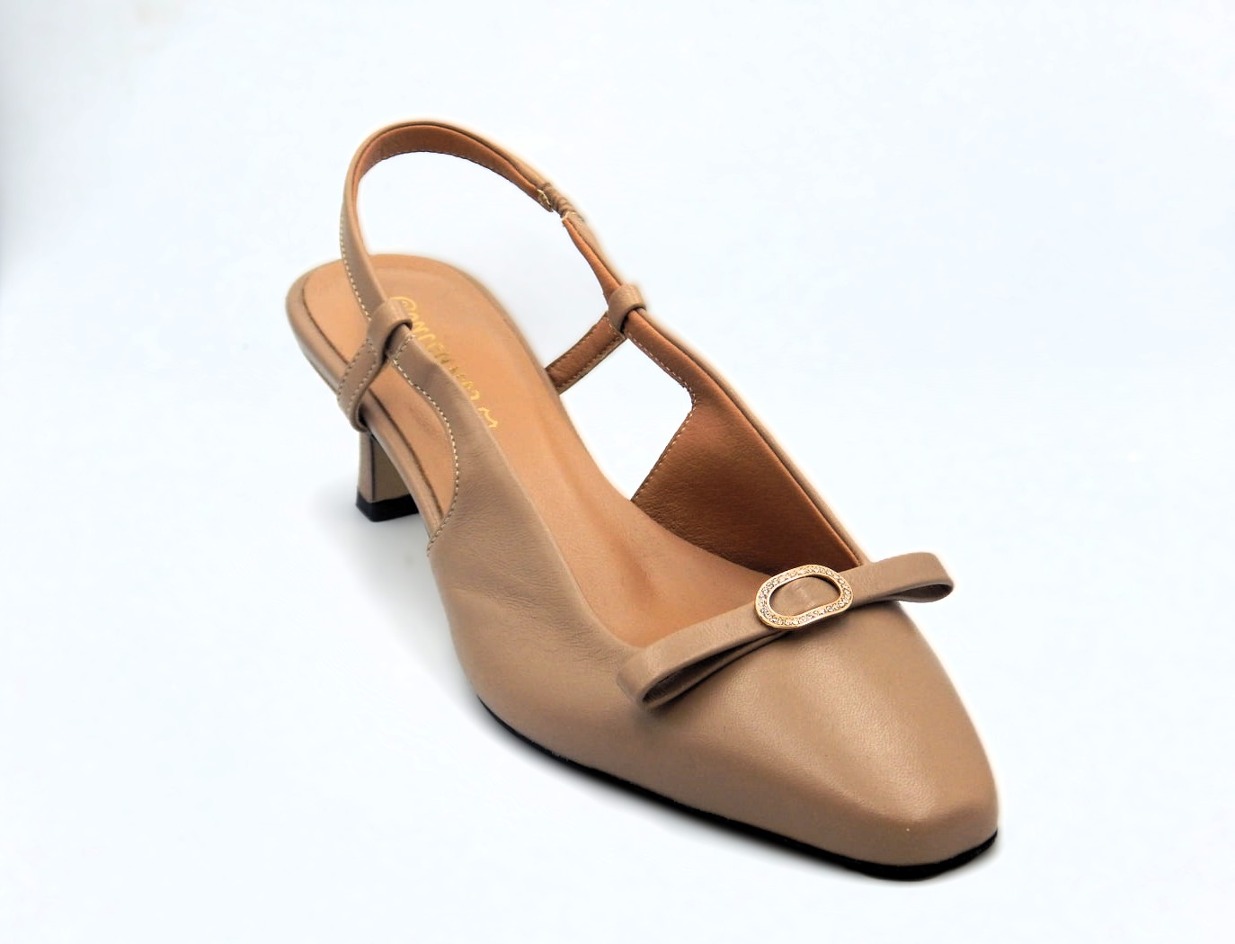 Απόλυτα θυληκές και κομψές γόβες slingback της Ελληνικής εταιρίας TOUTOUNIS σε taupe-πούρο χρώμα. Κατασκευασμένες εσωτερικά και εξωτερικά από εξαιρετικής ποιότητας δέρμα .΄Υψος τακουνιού 5,5εκ